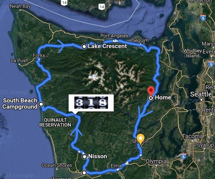 September 24: Home to South Beach - 154 miles I left home at 11AM. For this late in September the weather was quite nice as I headed south along Hood Canal: