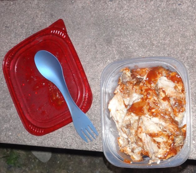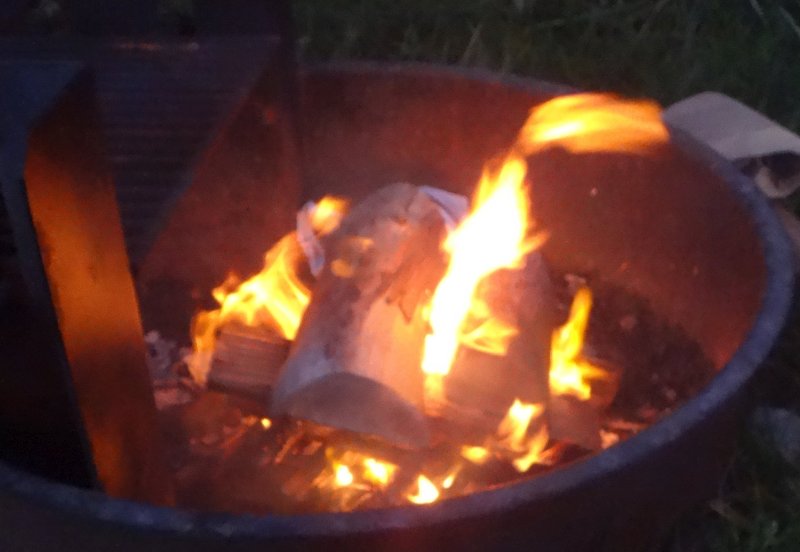 After the sun set it was time to get the fire going. As luck would have it there was a slight breeze from left to right so I could sit on the bench right next to the fire without having smoke blown into my face: Stubb's baby back ribs that I brought for dinner: